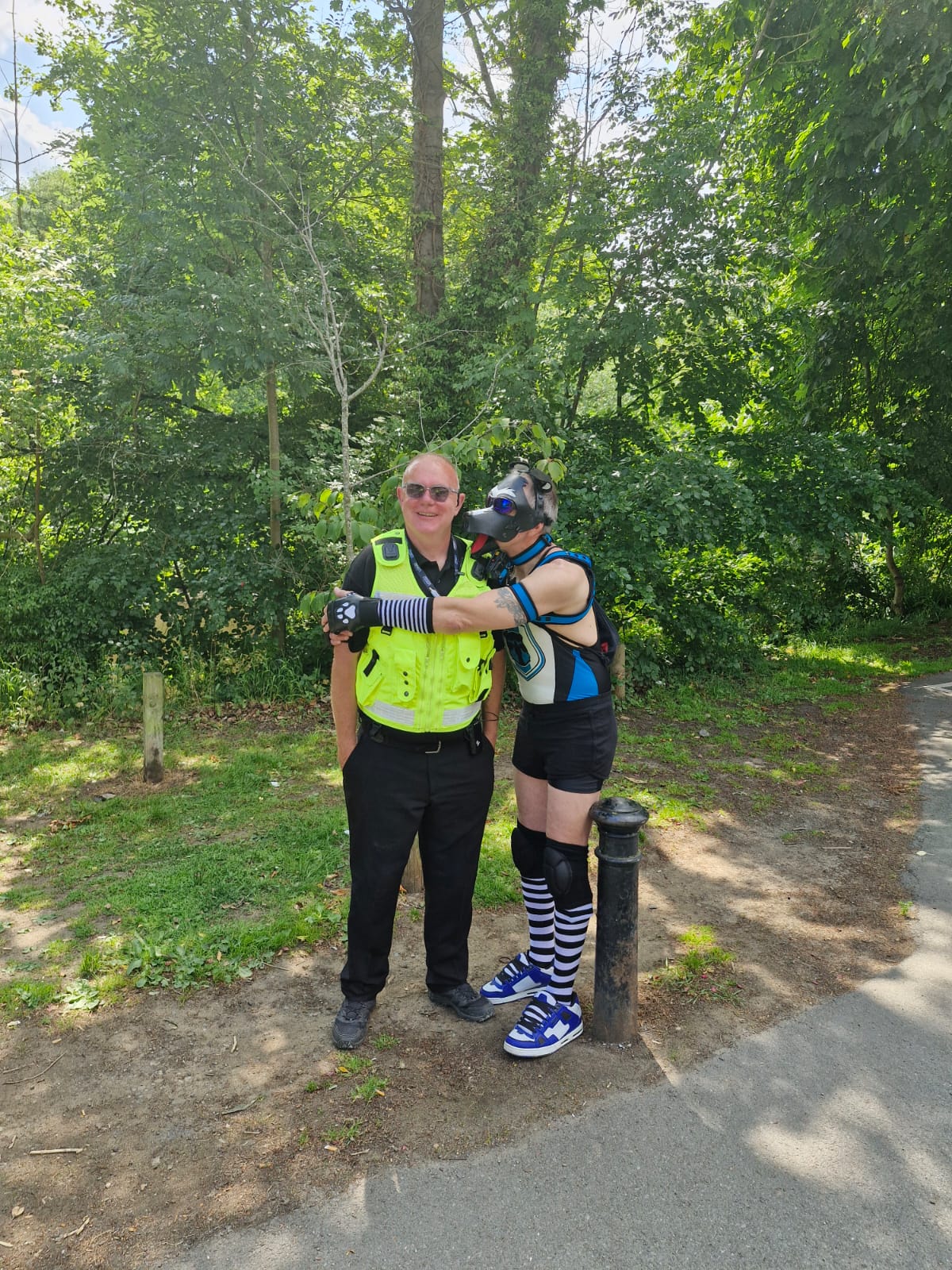 Our training manager at Knaresborough Bed Race 2025 with a very friendly wolf